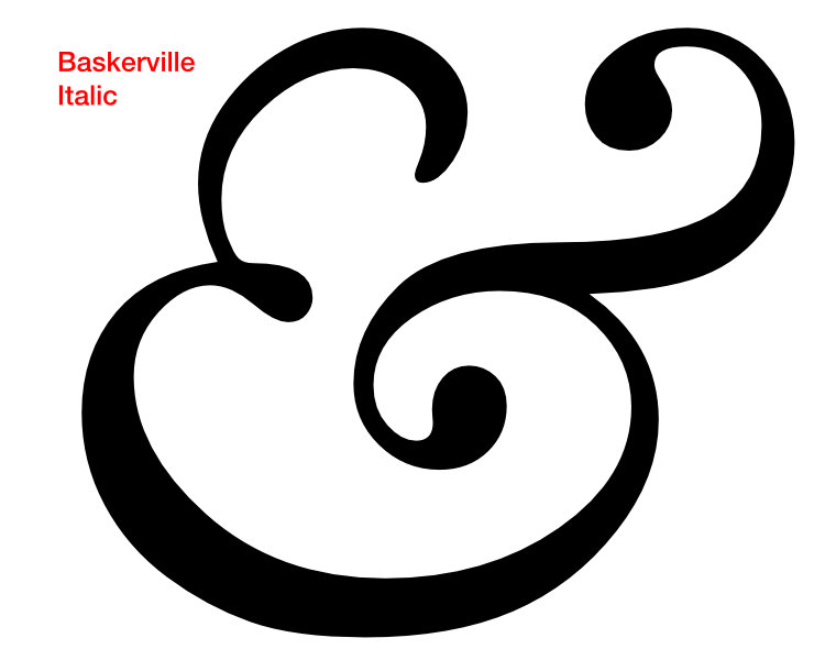 Through all this time the ampersand persisted and was developed. For a long time it remained relatively clearly based on the Latin et, albeit with points given for style and interpretation. Printed type brought a clear division of lettering styles; the upright Roman designs, and the cursive or italic. The more handwritten styles of type, the italics, tended to keep the more obviously et-like characteristics, while the upright forms became more rationalised. It is still possible to see the vestigial remnants of the e and t in most ampersands if you know what to look for, but in some cases it is like comparing a Bugatti Veyron with a horse-drawn buggy – the link has become pretty tenuous.