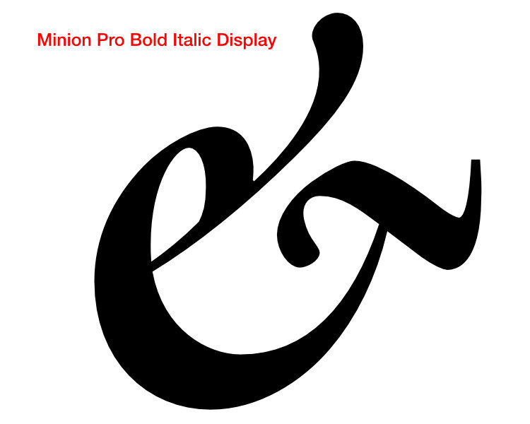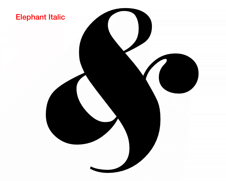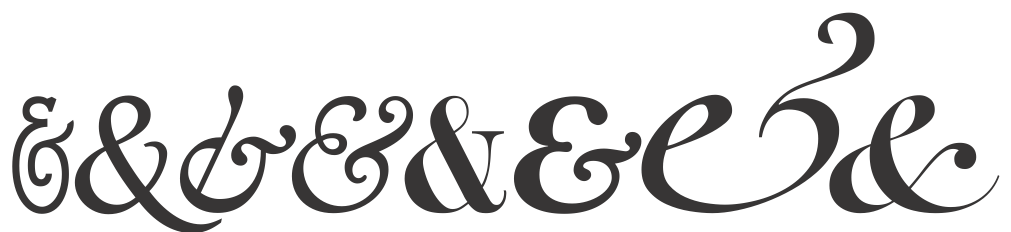 It is a shame the ampersand isn’t used more widely, as its looping swash shapes as found in many typefaces make it the most elegant and extravagant character around. Just take a look at the idiosyncracies in the ampersand designs in Cochin, for example, and the strong tradition preserved in the italic forms of Hoefler Text, Minion Pro or Berthold Garamond. Marvel at the sheer brash power of Elephant, the heavier weights of Bodoni, or the woodcut extremes of Blackoak!