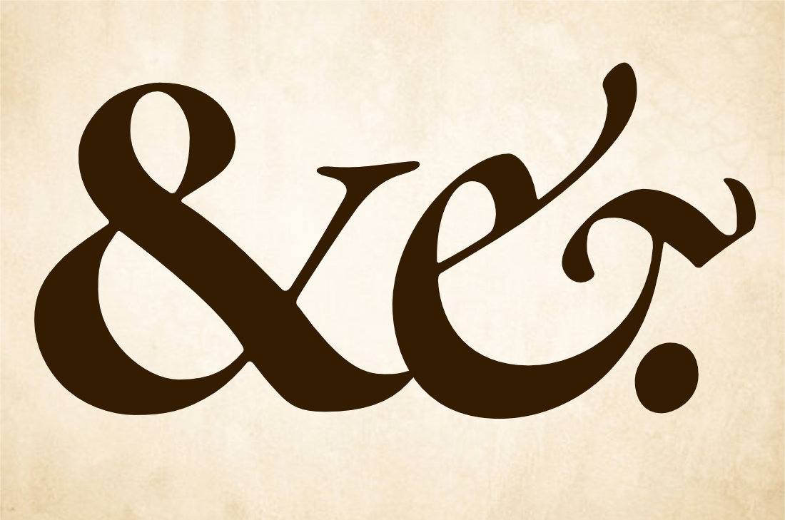 It is a shame the ampersand isn’t used more widely, as its looping swash shapes as found in many typefaces make it the most elegant and extravagant character around. Just take a look at the idiosyncracies in the ampersand designs in Cochin, for example, and the strong tradition preserved in the italic forms of Hoefler Text, Minion Pro or Berthold Garamond. Marvel at the sheer brash power of Elephant, the heavier weights of Bodoni, or the woodcut extremes of Blackoak!