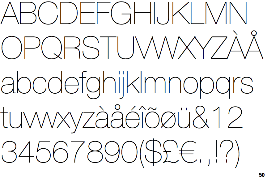 If you’re still of the feeling that Helvetica is overused, take a look at the full range of weights available and see what you can do with some of the lesser-used faces. Of course, with it the new ‘font of Mac OS X’ as well as the iOS system typeface Apple may be leading us to a stage where it will feel just too ubiquitous for anyone to bear, but remember that one of the things that made the family so popular in the first place was its versatility. Try Light or Thin instead of the regular, ah, ‘Regular’. You should even try the skeletal Ultra Light, although please only set very large or the strokes will all but vanish. And do look seriously at getting more faces; Apple’s freebie eleven are useful, but it’s just a small percentage of the full set.